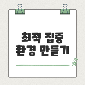 공부와 작업의 효율성을 높이기 위해서는 환경이 매우 중요한 역할을 합니다. 집중력을 향상시키는 환경을 만들기 위한 핵심 원리와 실천법을 정리하였으니, 오늘부터 하나씩 실천해보세요.