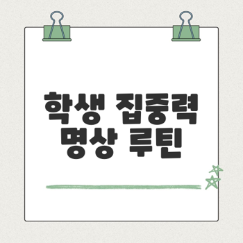 이처럼 효과적인 명상 루틴은 짧은 시간 투자로도 큰 효과를 기대할 수 있으며, 학습 능력 향상뿐 아니라 정서 안정까지 함께 얻을 수 있는 강력한 방법입니다. 지금 바로 일상 루틴에 이러한 명상 실천을 추가하여, 더 맑고 집중력 높은 나를 만들어 가보세요.